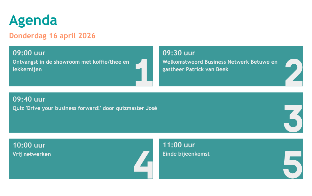 Je bent dus op donderdag 16 april van harte welkom om van 09:00 - 11:00 uur aangenaam te komen netwerken bij hét business netwerk voor de succesvolle ondernemer in de regio Arnhem-Nijmegen tot vér daarbuiten!