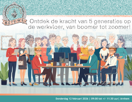 Steeds vaker horen we van organisaties dat ze aanlopen tegen de diversiteit in generaties en leeftijden. Niet zo gek, want voor het eerst werken we nu met vijf generaties op de werkvloer. Vijf verschillende generaties, vijf verschillende visies. De Babyboomer faseert uit, generatie X en de Pragmaten staan aan het roer, de veelbesproken millennial is al een tijdje aan het werk en de uitgesproken generatie Z komt nu de werkvloer op. Hoe pak je dit aan? Hoe kunnen we elkaar versterken, de verbinding aangaan en de generatiekloof dichten? Gastspreker Heike Huidekoper van Generations At Work maakt tijdens de gastpresentatie inzichtelijk waar de generaties in verschillen, wat je daar als organisatie of leidinggevend kader mee kunt doen, en hoe je de generatieverschillen voor je kunt laten werken in plaats van tegen je. Een visie op generaties, een inspirerend verhaal én een hands-on aanpak om de huidige generaties op de werkvloer meer tot hun recht te laten komen.